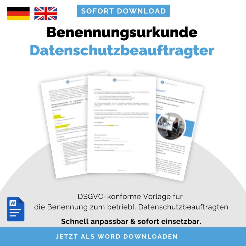Benennungsurkunde Datenschutzbeauftragter intern | Vorlage nach DSGVO & BDSG | Deutsch & Englisch | Word-Download