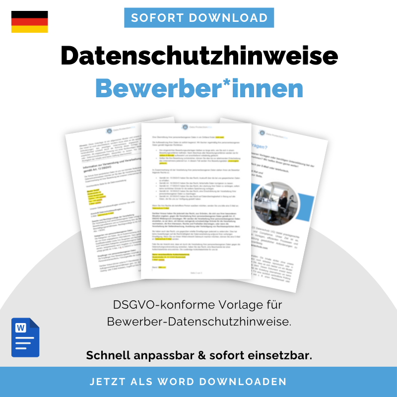 Mit dieser professionell erstellten Vorlage erfüllen Sie Ihre gesetzlichen Informationspflichten nach Art. 13 DSGVO und § 26 BDSG im Bewerbungsprozess.