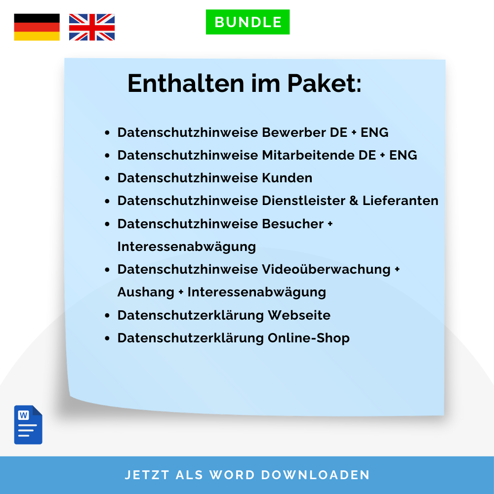 Datenschutzhinweise Paket | DSGVO-Bundle mit 7 Vorlagen | Sofort-Download