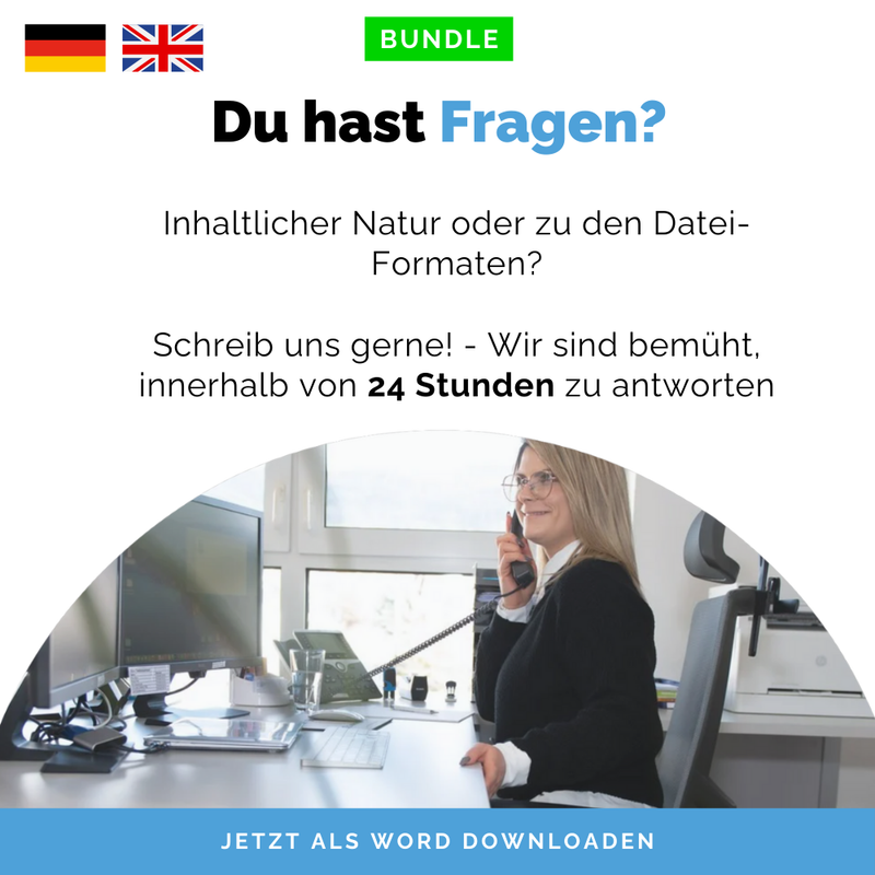 Alle Vorlagen sind in Deutsch und Englisch enthalten, sofort anpassbar und ideal für Unternehmen jeder Größe – von Startups bis Mittelstand.