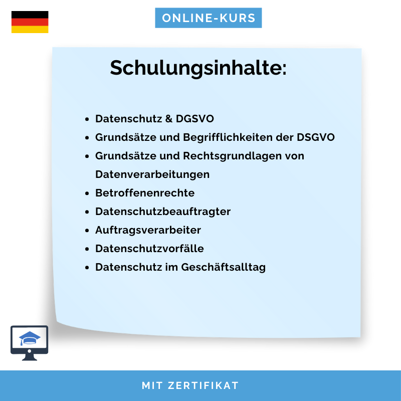 - DSGVO Grundlagenschulung Online mit Zertifikat
